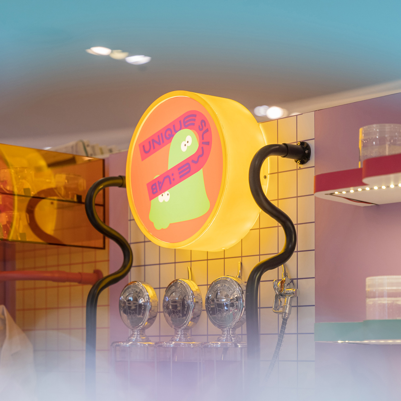 Here, the visual image and spatial planning are matched. Through the interaction between children and slimes, the customers can get more rewards from the five senses. It enhances the complete brand experience in the counter.