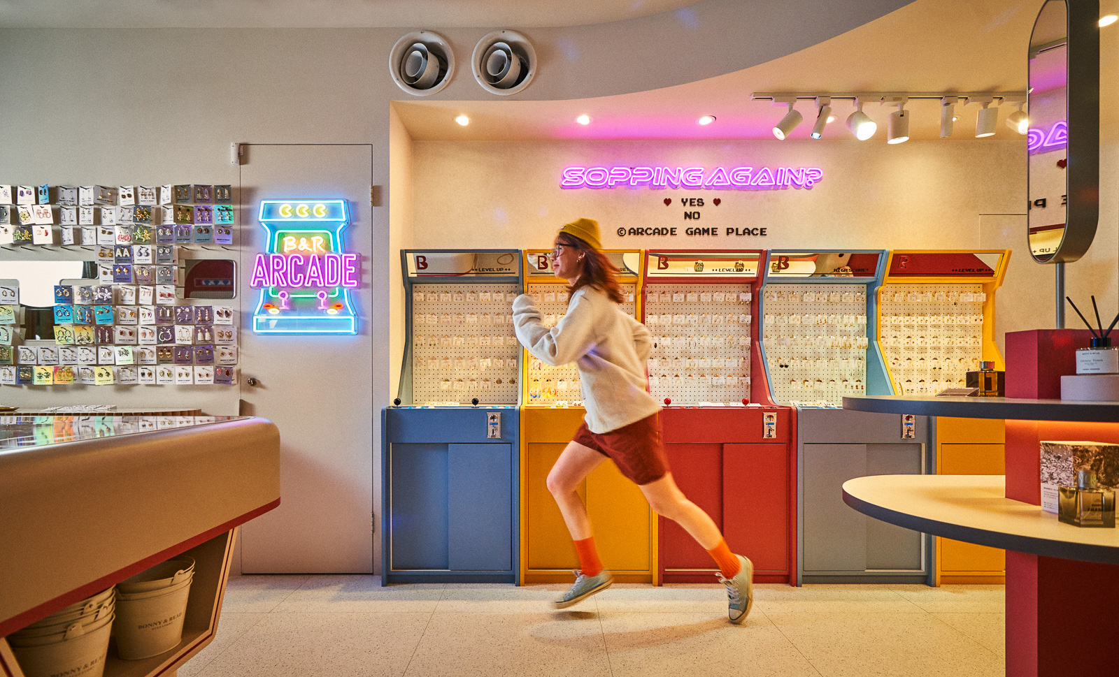 此次將飾品門市與復古電動間概念做結合,希望進入店內的消費者可以在紅白機的8BIT電玩世界中,暫時忘卻課業煩惱、從工作壓力解脫,好好地為自己的美麗Level up!