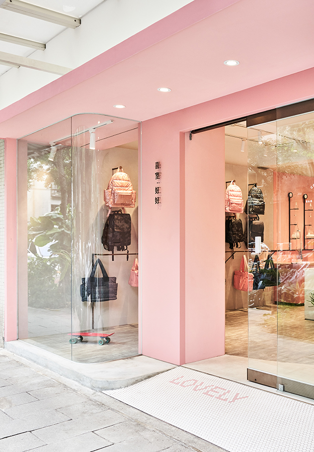 “A saccharine pink store stands out in the greenery of Minsheng Community, Taipei.”
