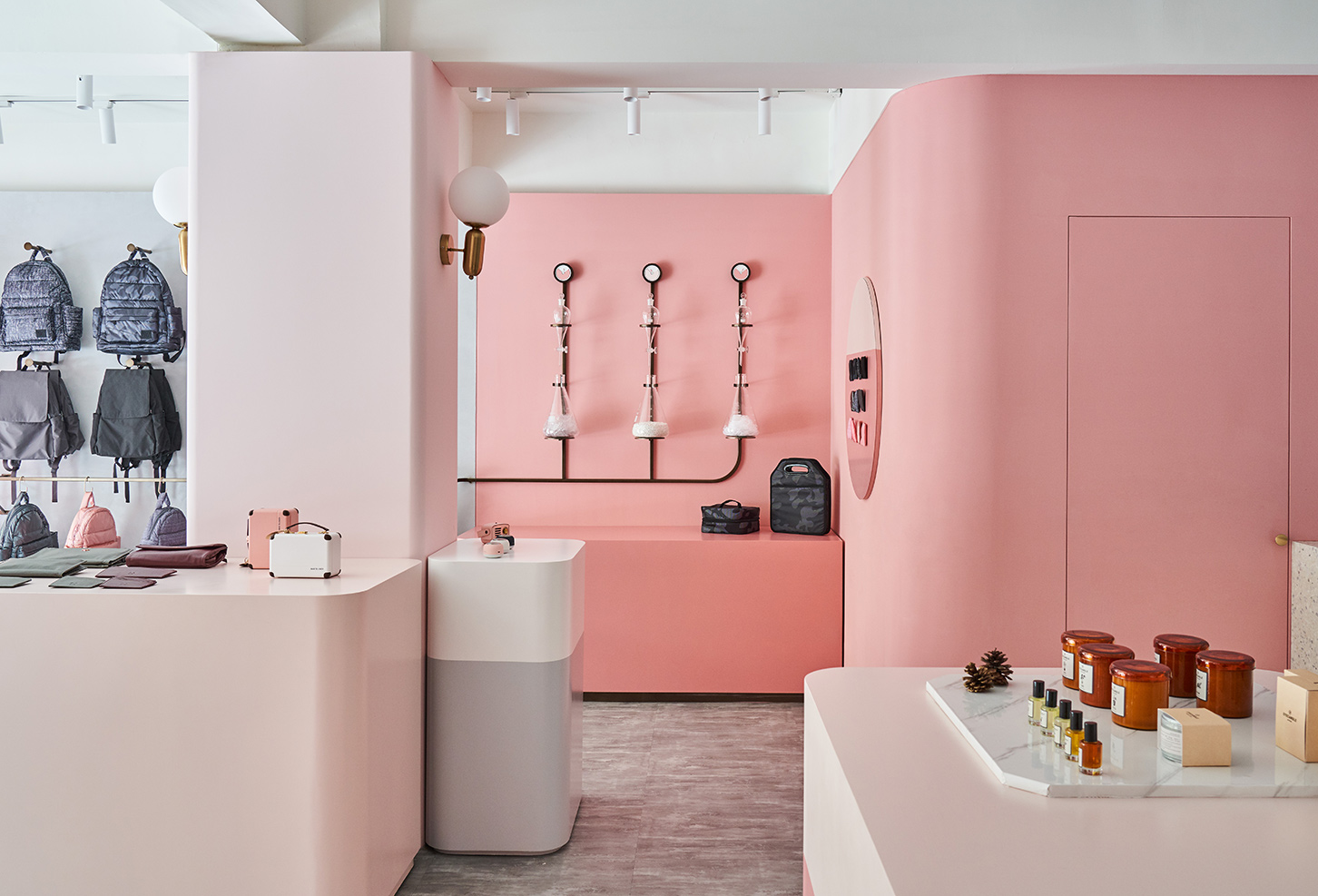 汲取企業色-粉紅色為空間主調,為了不讓過多的粉色讓顧客產生壓迫,