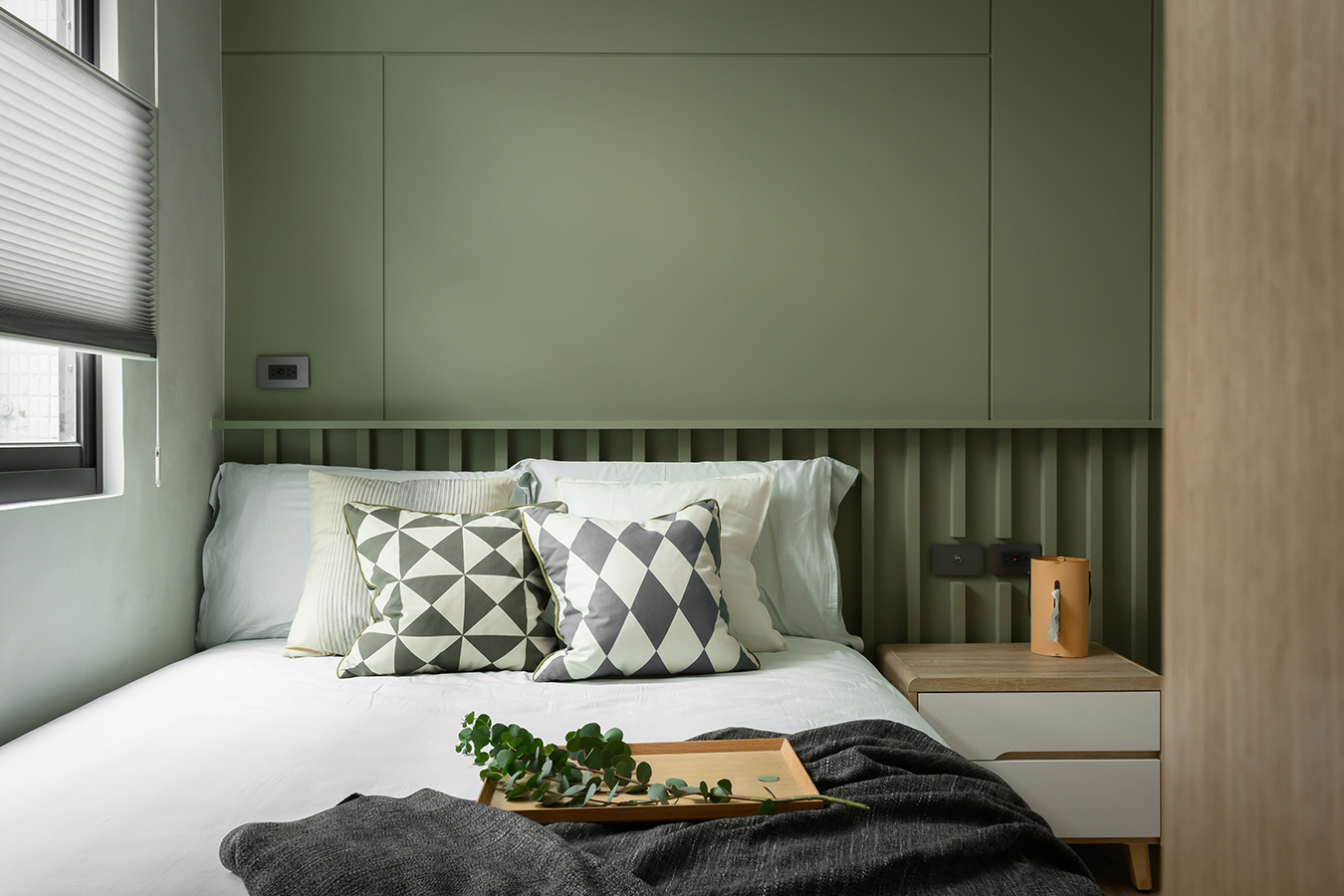 並於其中點綴低彩度的綠,讓空間寧靜卻富生機。